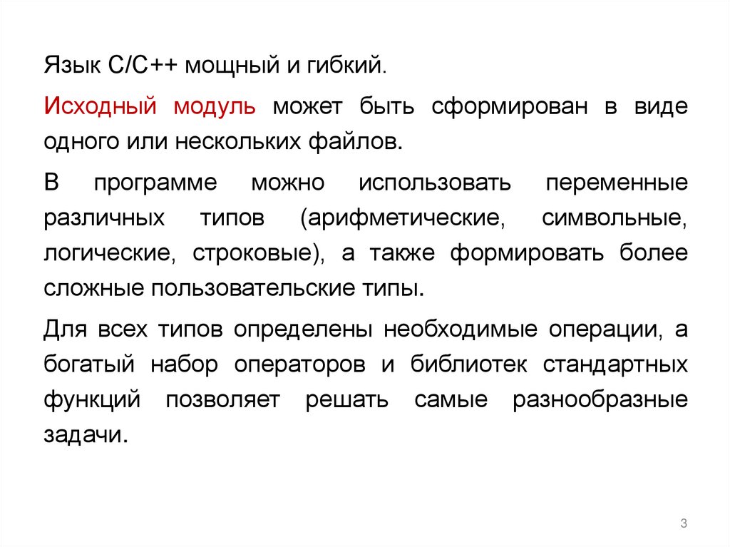 Язык С/С++ мощный и гибкий.Исходный модуль может быть сформирован в виде