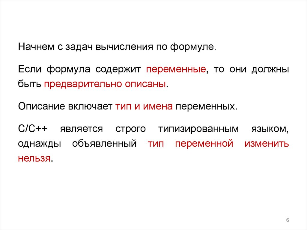 Начнем с задач вычисления по формуле.Если формула содержит переменные, то они должны
