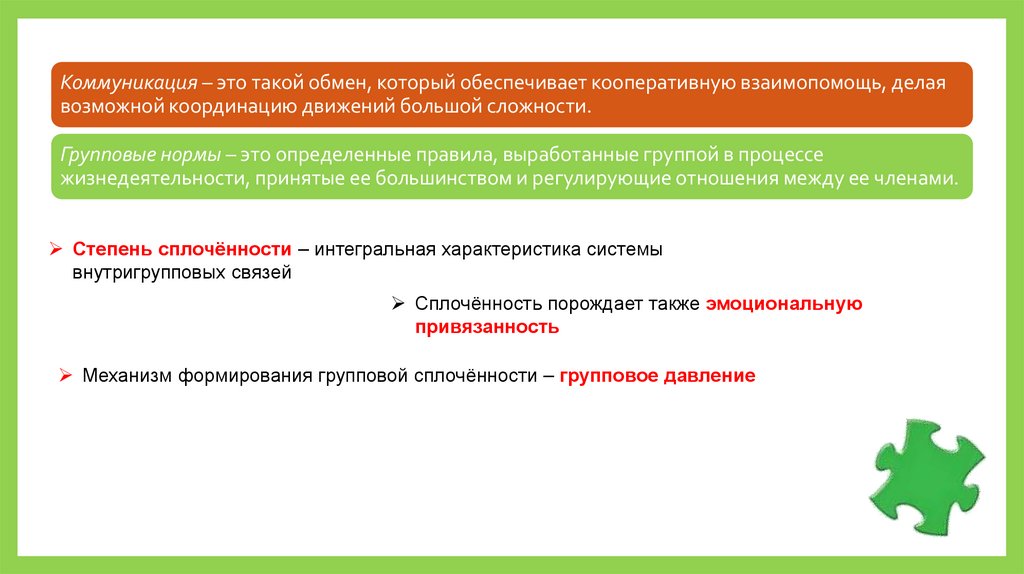 Сплочённость порождает также эмоциональную