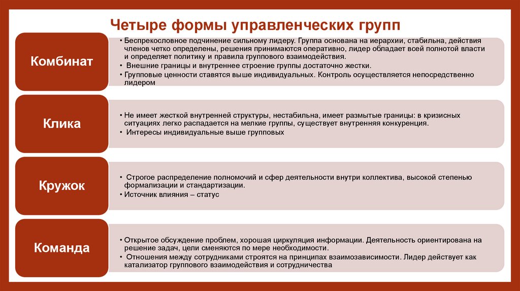 Четыре формы управленческих группКомбинат