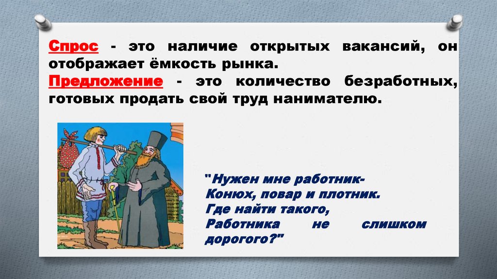 соискатель и работодатель;спрос и предложение, их соотношение;