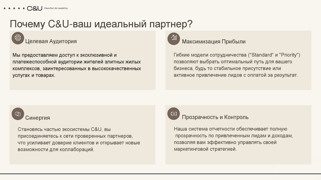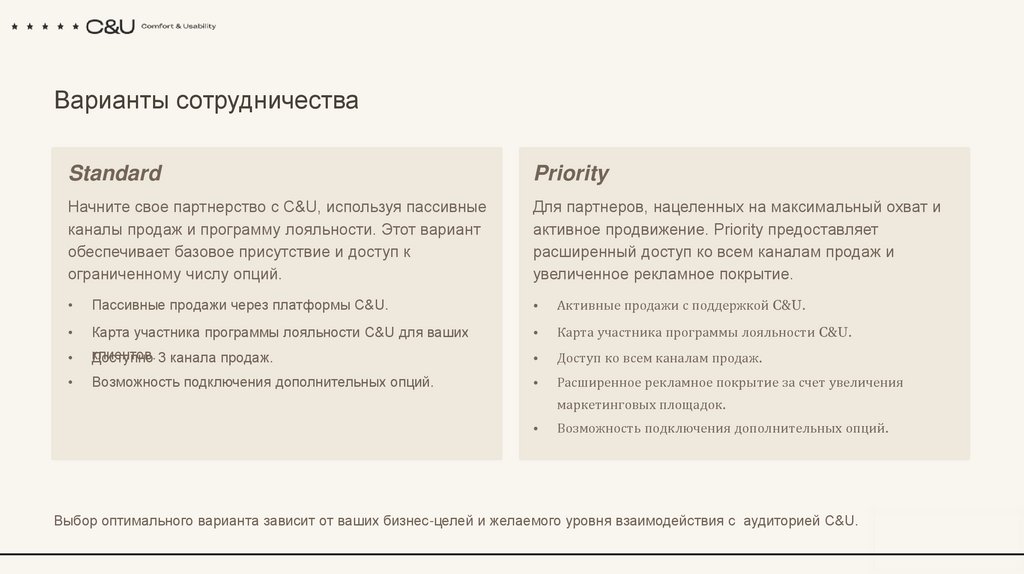 Предложение о сотрудничествеПрограмма лояльности C&U