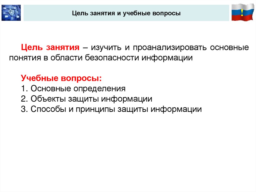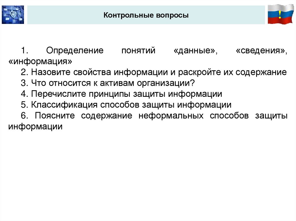 Тема 1.Понятие безопасности информации и основные принципы защиты