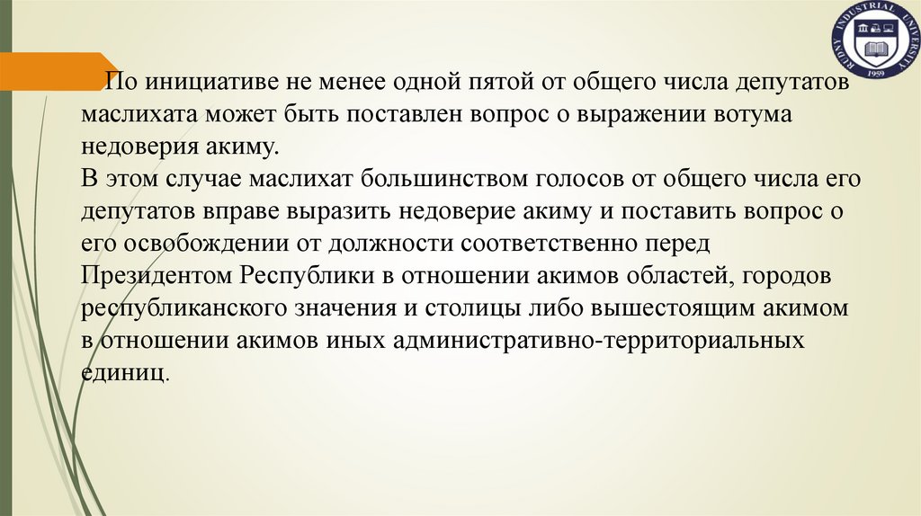 депутатов вправе выразить недоверие акиму и поставить вопрос о