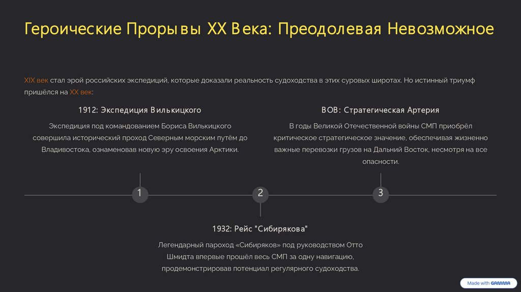 Героические Проры в ы XX В ека: Преодолевая НевозможноеXIX век стал эрой российских экспедиций, которые доказали реальность судоходства в этих суровых широтах. Но истинный триумф