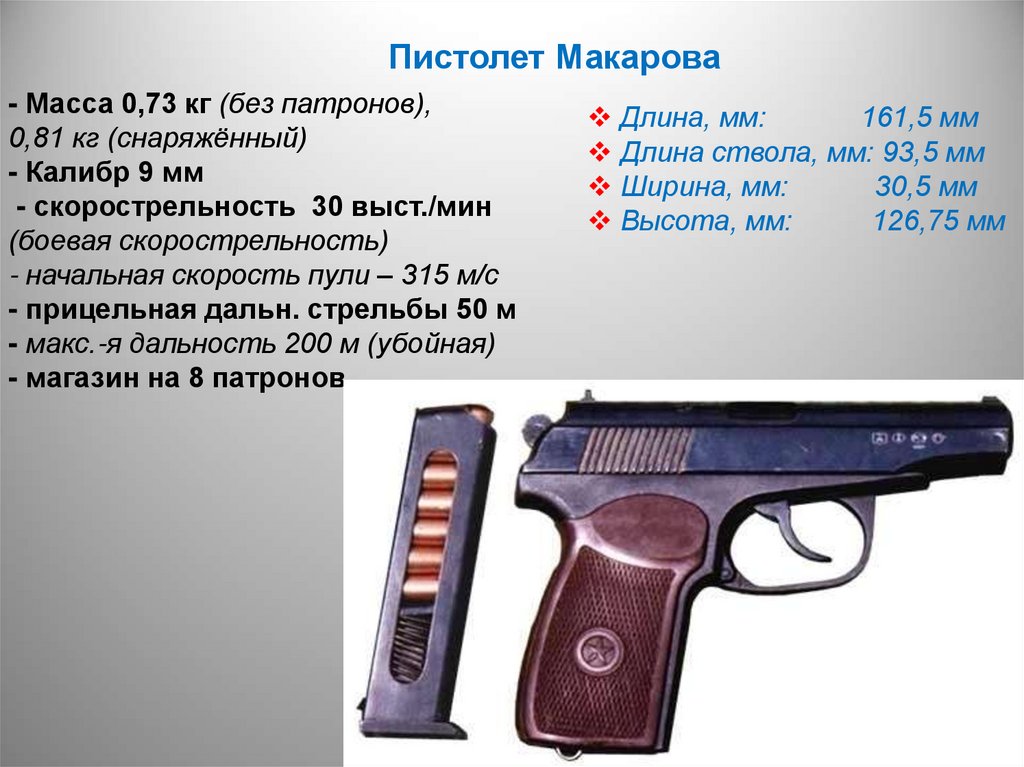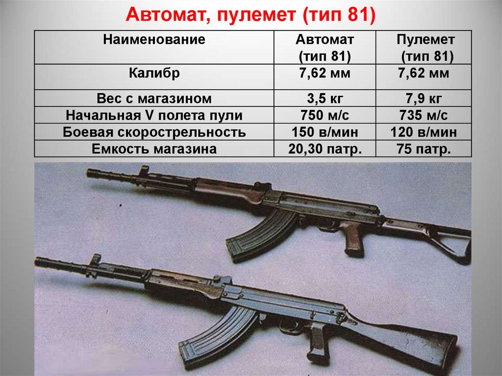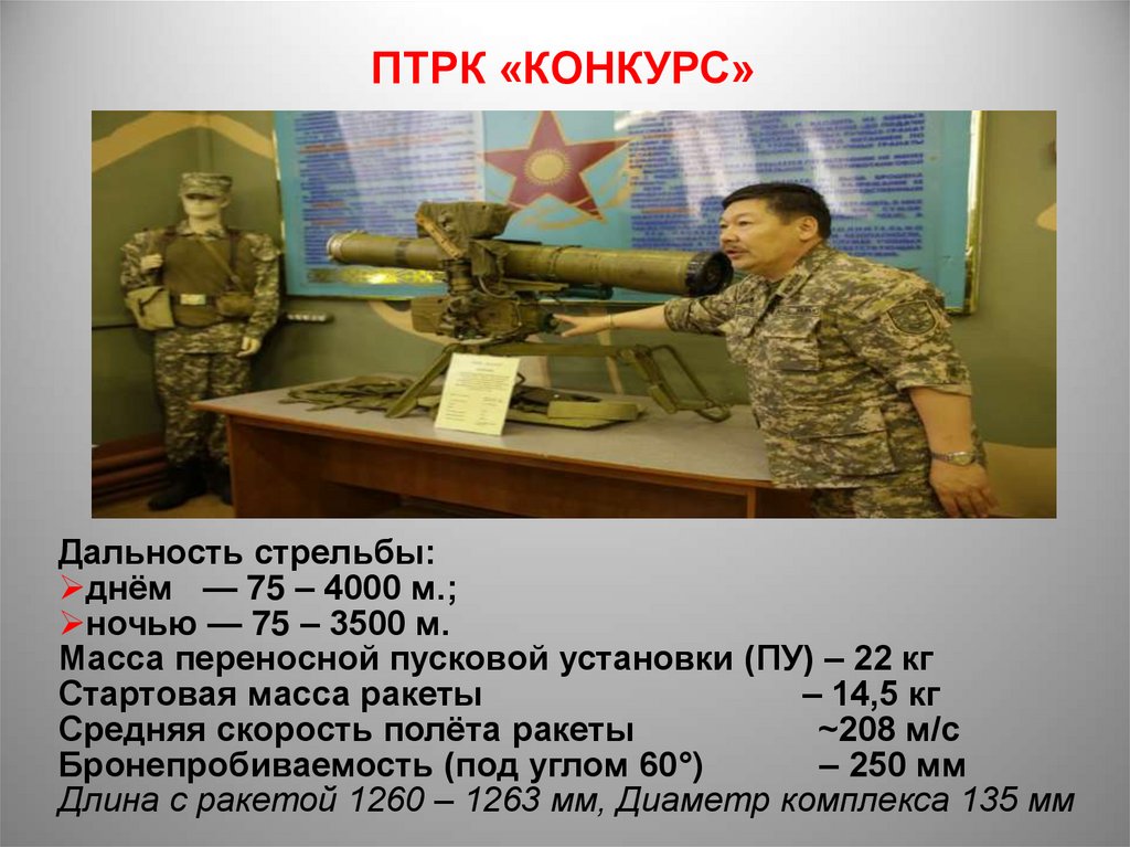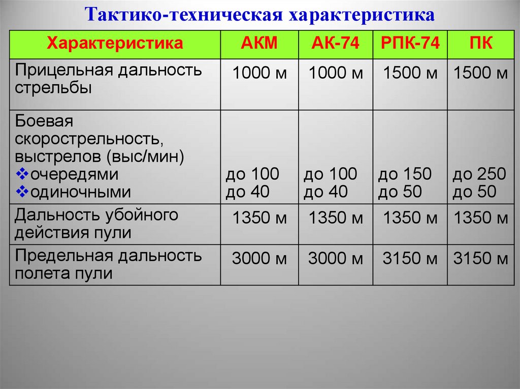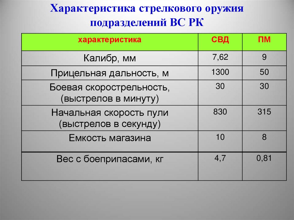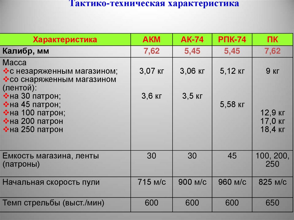 - ПМ-1, ПК-1, СВД-1, РПГ-7в -3, РПК-74 -3, АКС-74У -6, АК 74- 15, ГП-25 -6.