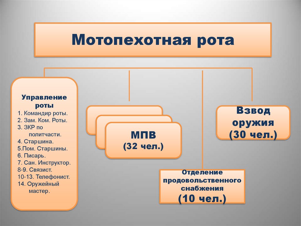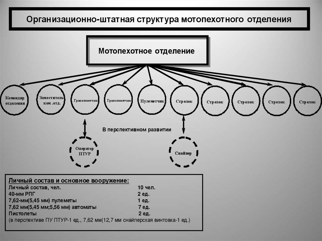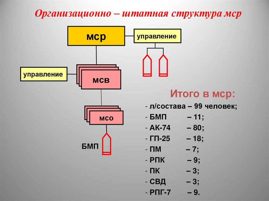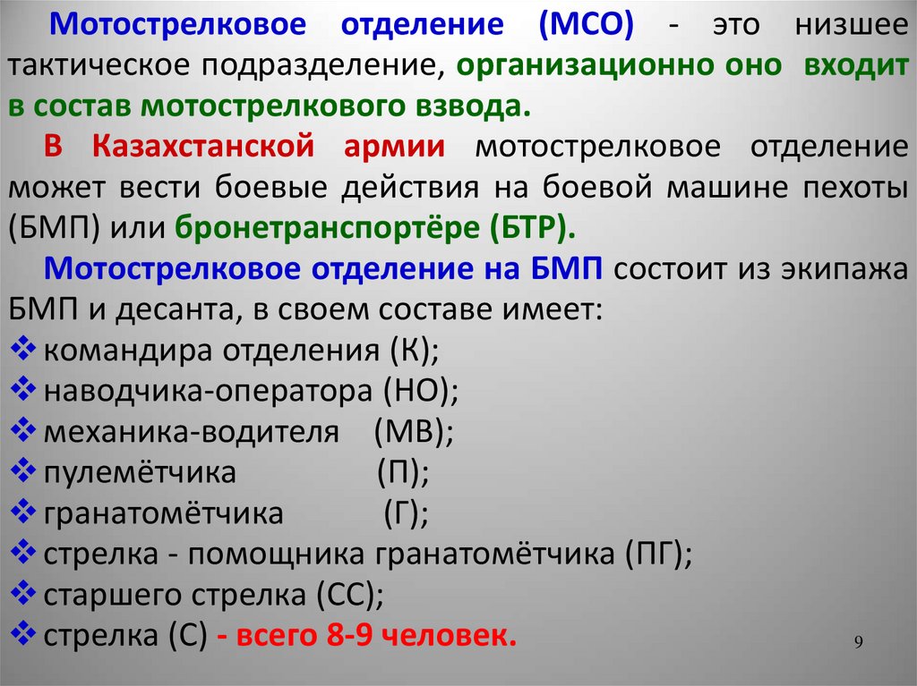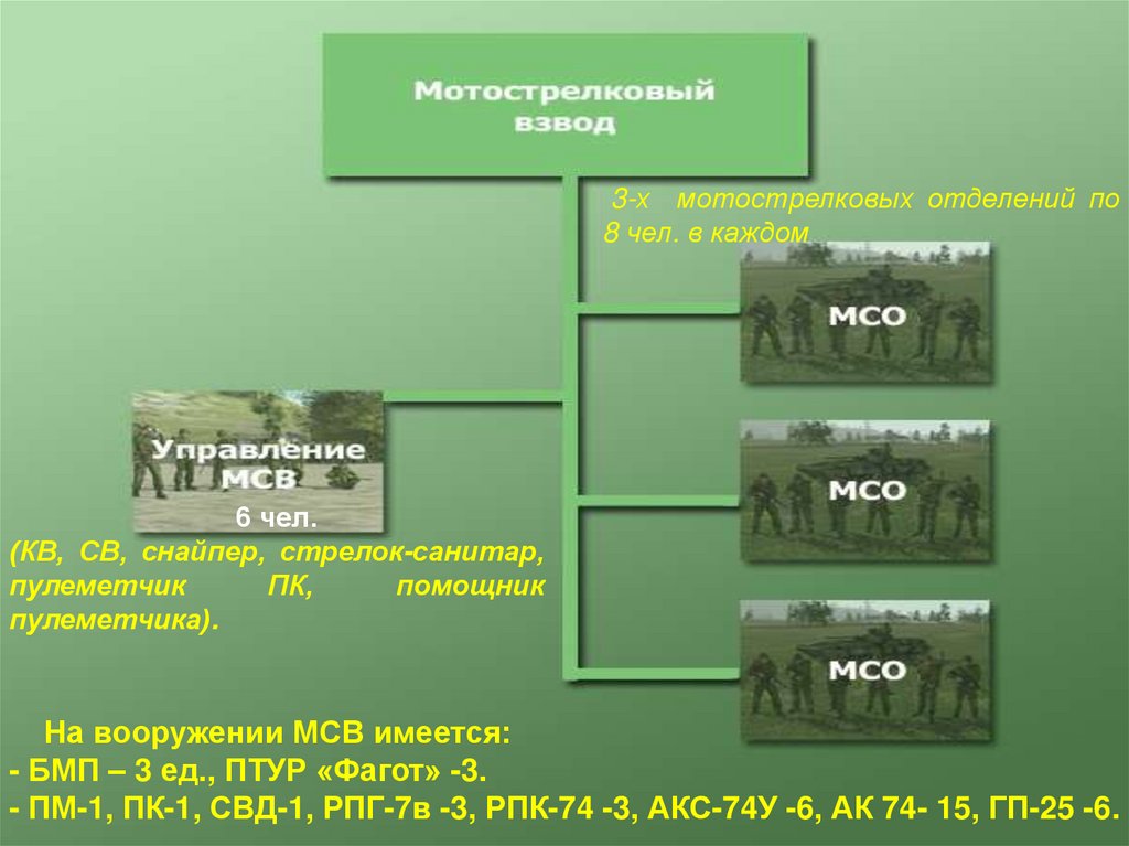 Мотострелковое отделение (МСО) - это низшеетактическое подразделение, организационно оно входит
