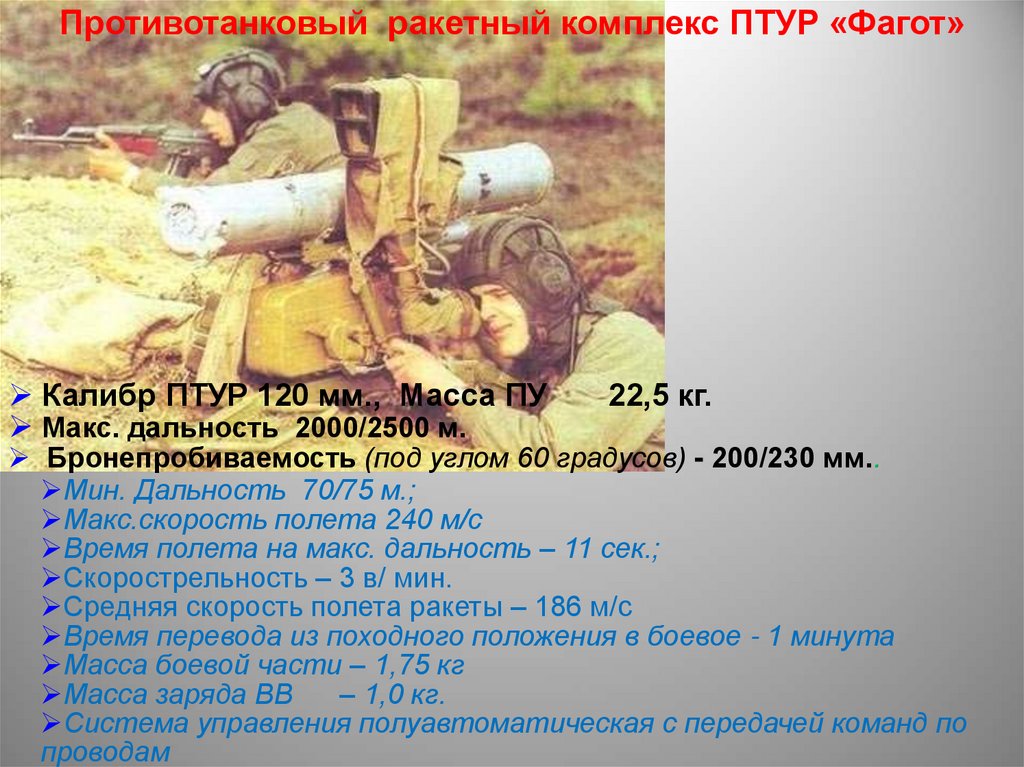 - БМП – 3 ед., ПТУР «Фагот» -3.