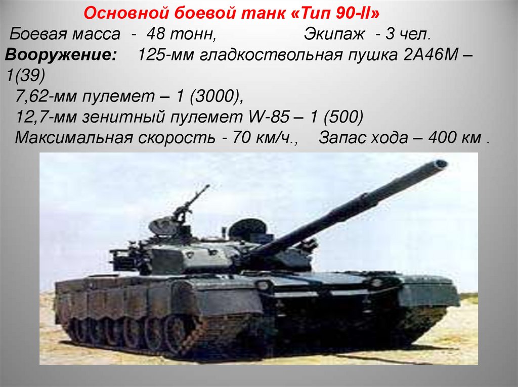 Основной боевой танк «Тип 90-II»Боевая масса - 48 тонн,