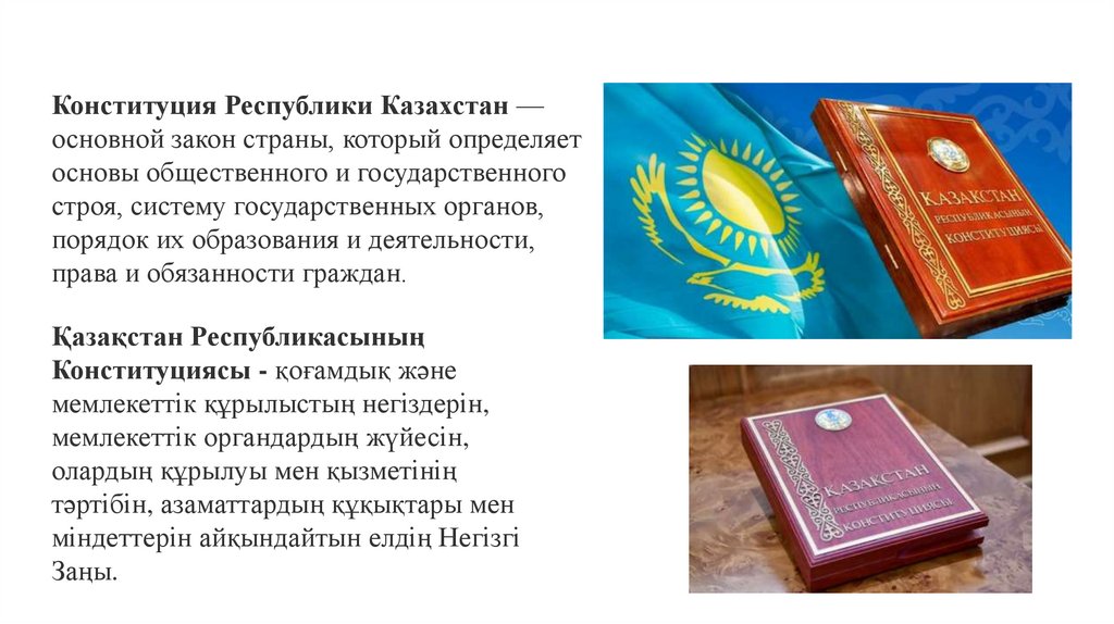 Конституция Республики Казахстан —основной закон страны, который определяет