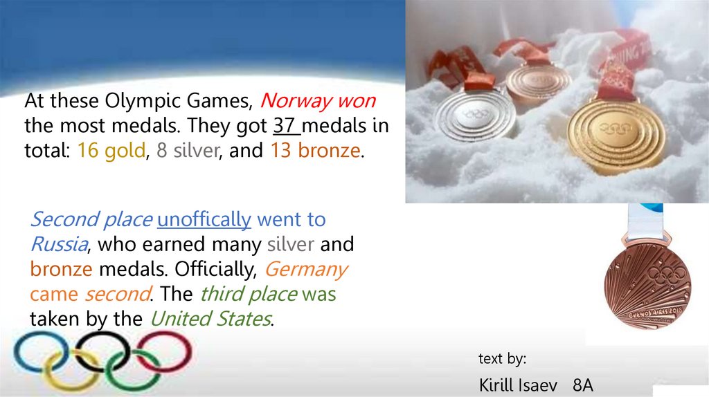 At these Olympic Games, Norway wonthe most medals. They got 37 medals in