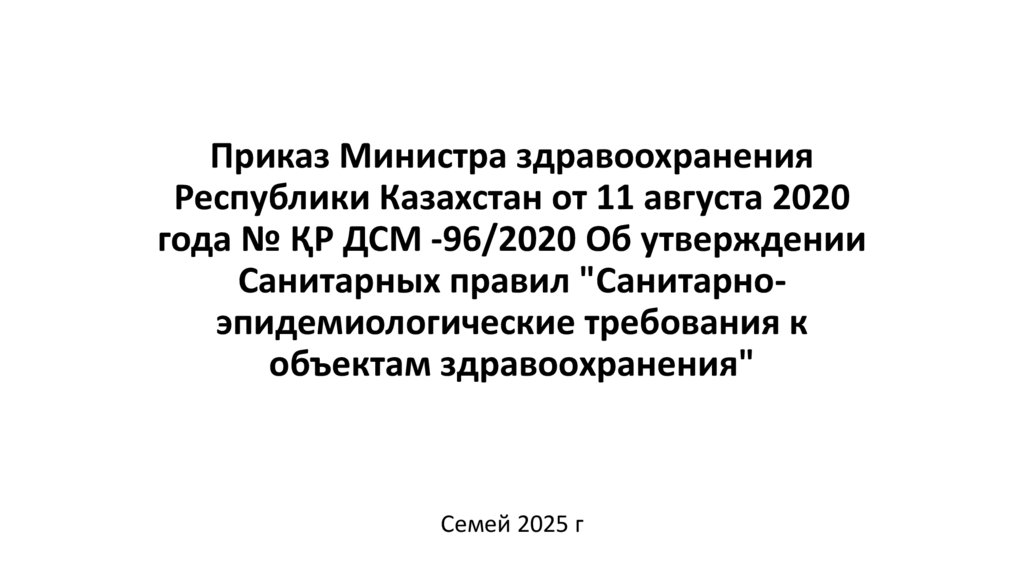 Приказ Министра здравоохранения Республики Казахстан от 11 августа 2020 года № ҚР ДСМ -96/2020 Об утверждении Санитарных правил