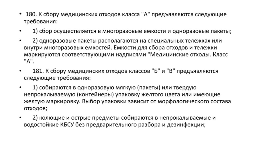181. К сбору медицинских отходов классов "Б" и "В" предъявляются