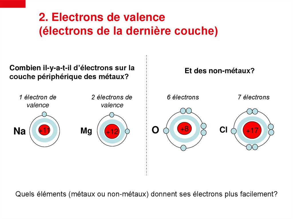 2. Electrons de valence(électrons de la dernière couche)