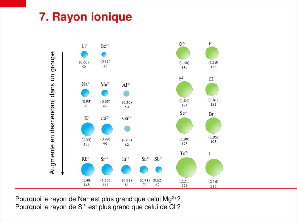 7. Rayon ioniquePourquoi les rayons atomiques des