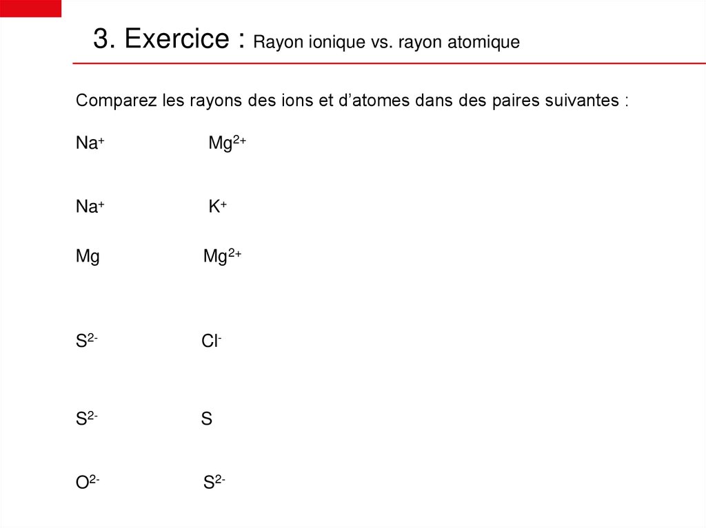 7. Rayon ioniquePourquoi le rayon de Na+ est plus grand que celui Mg2+?