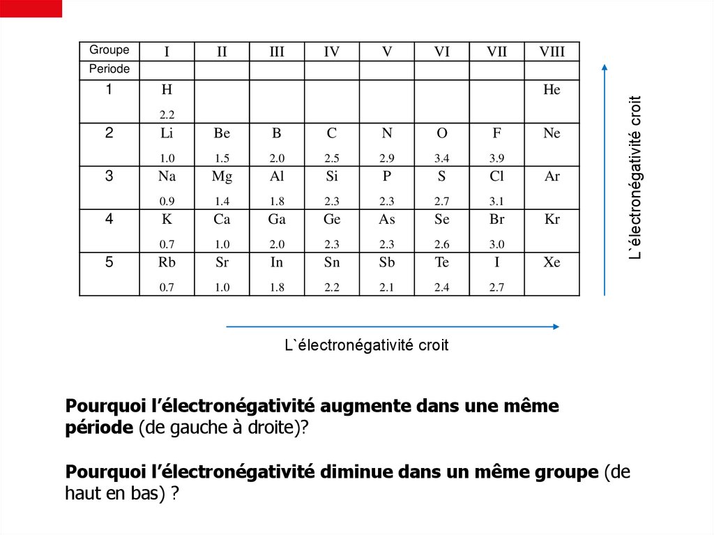 Groupe VA: N3-, P3Groupe VIA: O2-, S2Groupe VII A: F-, Cl-, Br-, I-