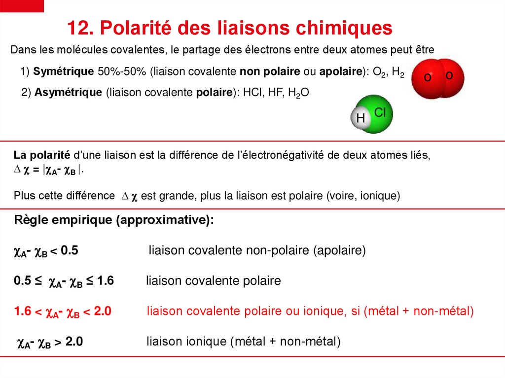 17. Application pratique de la polarité desmolécules