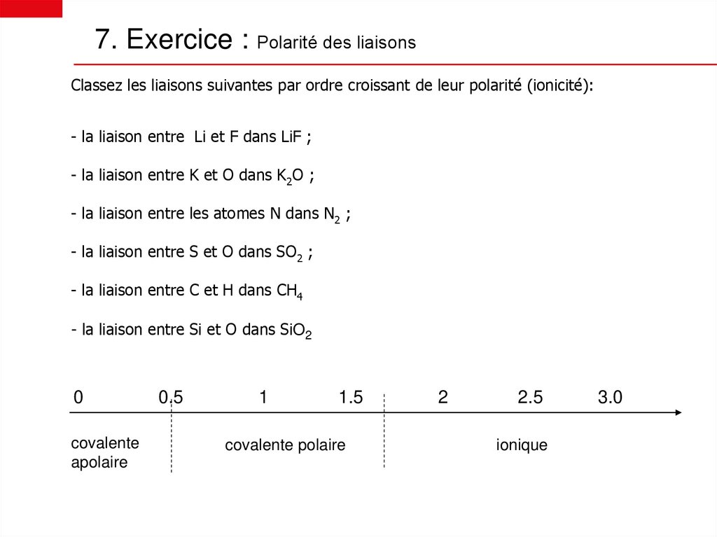 • analyser la polarité de chaque liaison (en faisant le calcul de ) et dessiner