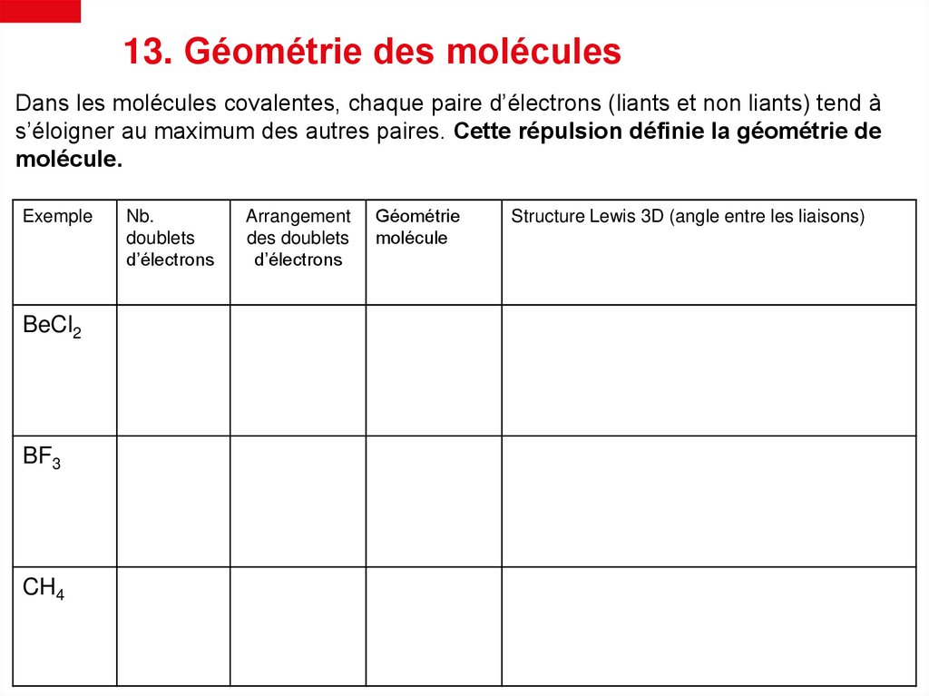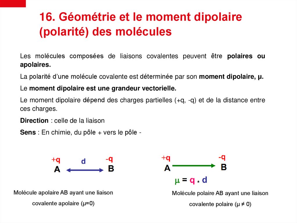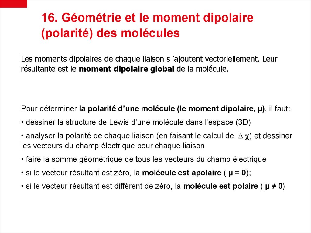 16. Géométrie et le moment dipolaire(polarité) des molécules