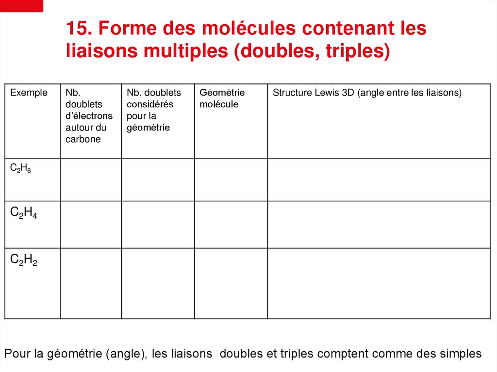 15. Forme des molécules contenant lesliaisons multiples (doubles, triples)