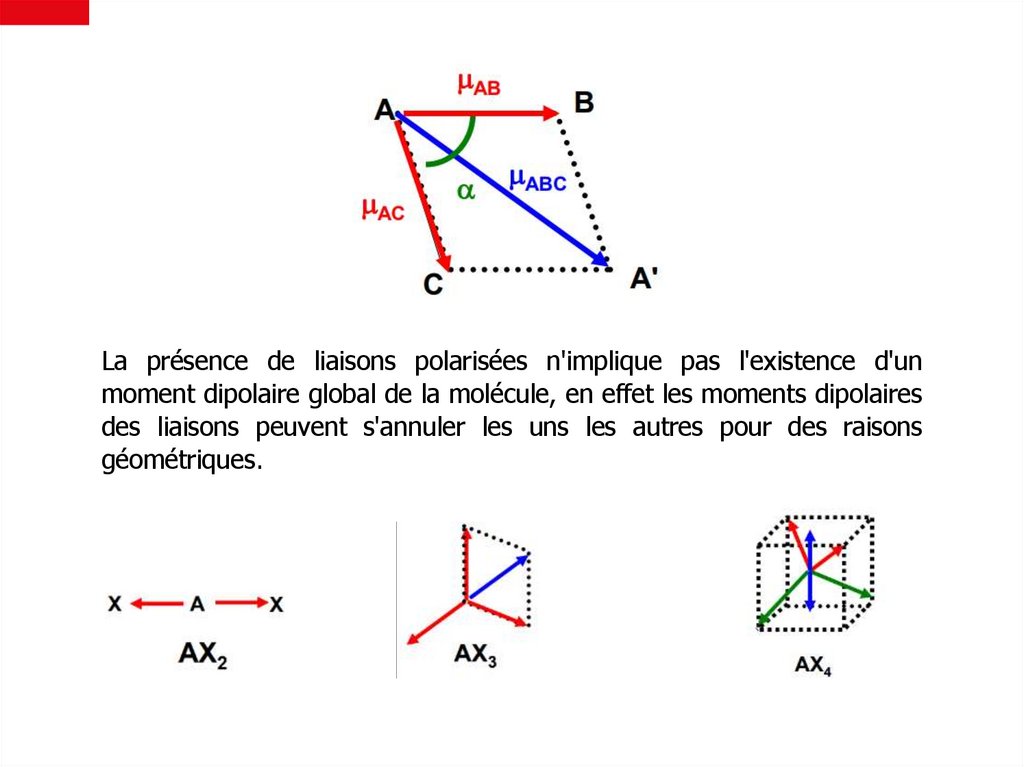 • si le vecteur résultant est différent de zéro, la molécule est polaire ( µ ≠ 0)
