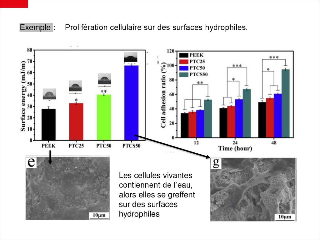 Exemple :Prolifération cellulaire sur des surfaces hydrophiles.
