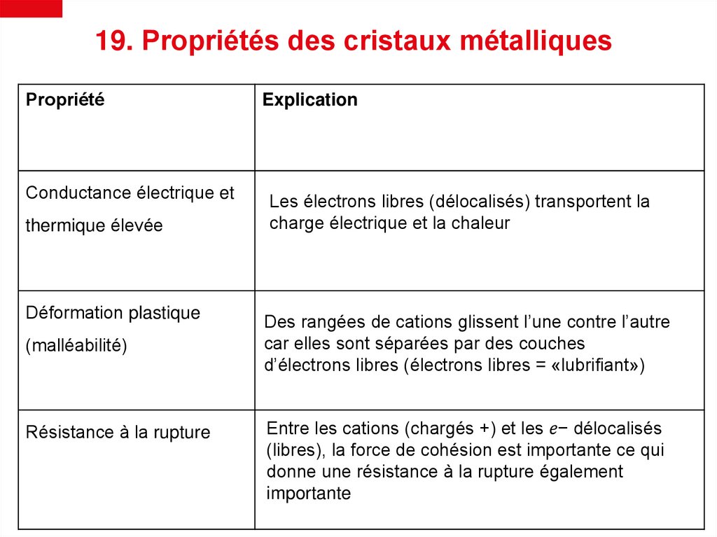 19. Propriétés des cristaux métalliquesPropriété