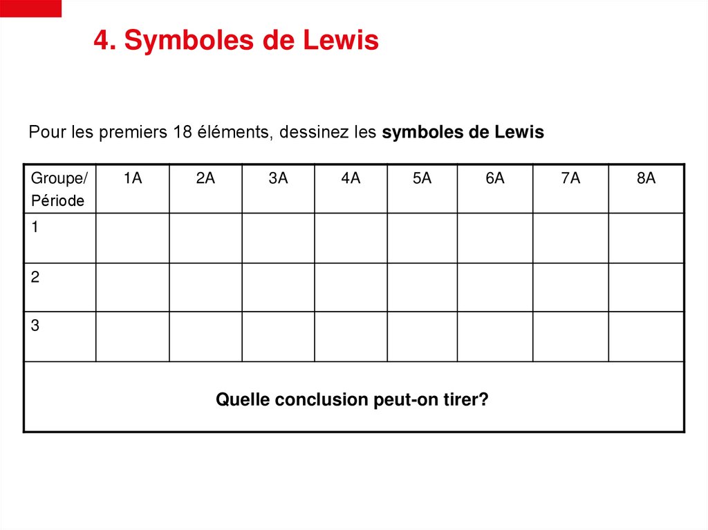 4. Symboles de LewisPour les premiers 18 éléments, dessinez les symboles de Lewis