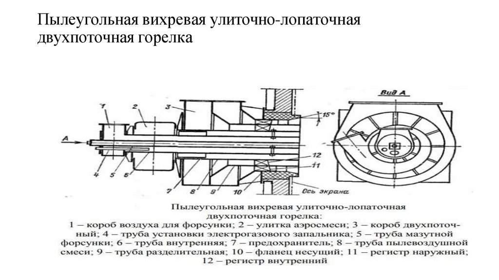 Пылеугольная вихревая улиточно-лопаточнаядвухпоточная горелка