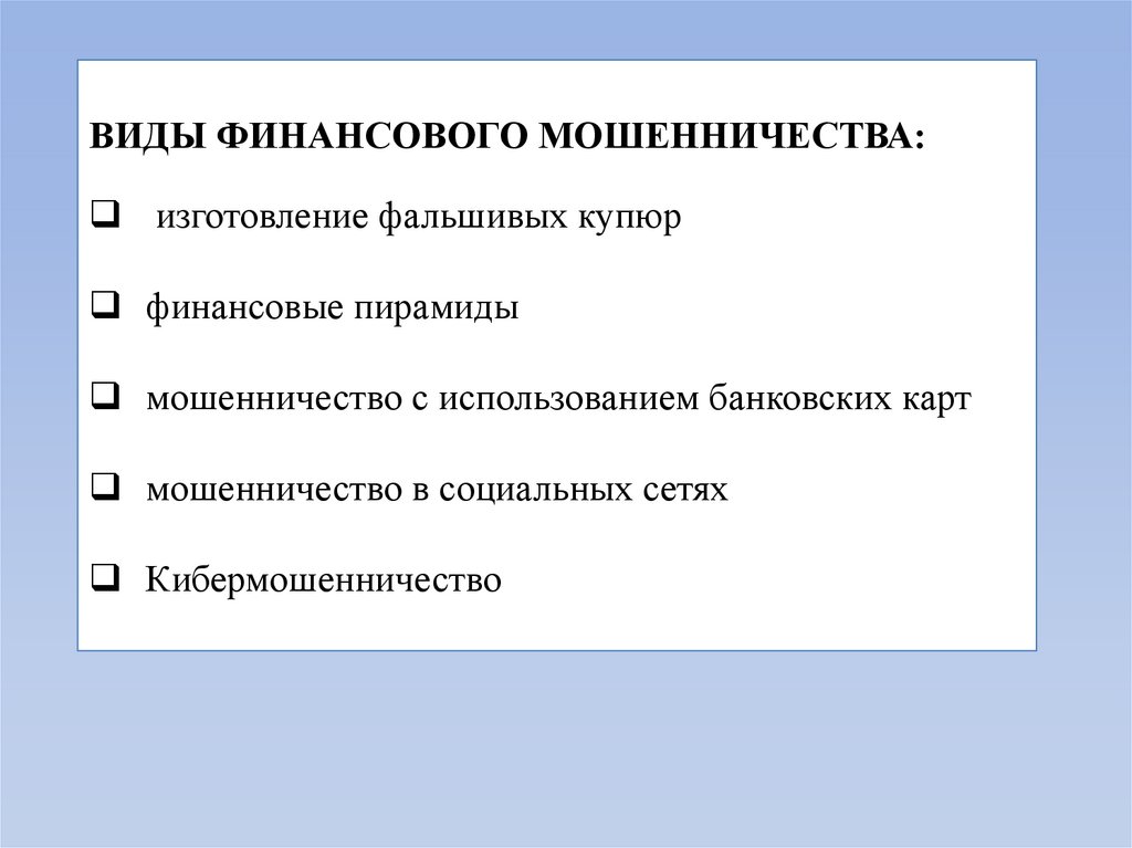 ВИДЫ ФИНАНСОВОГО МОШЕННИЧЕСТВА:изготовление фальшивых купюр