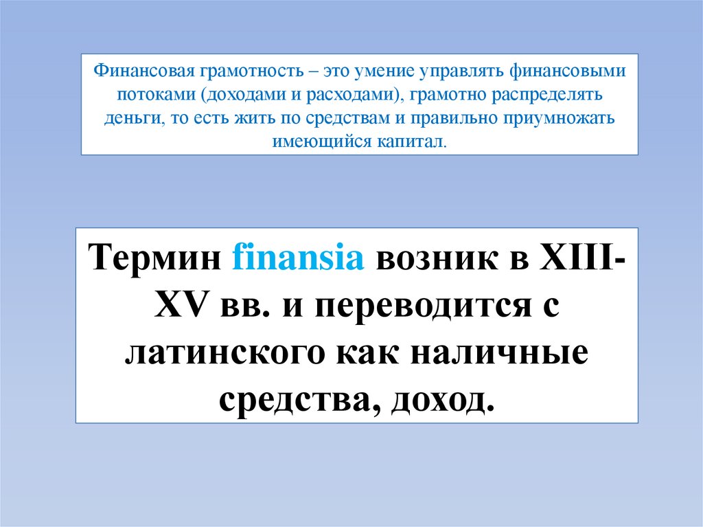 Финансовая грамотность – это умение управлять финансовымипотоками (доходами и расходами), грамотно распределять