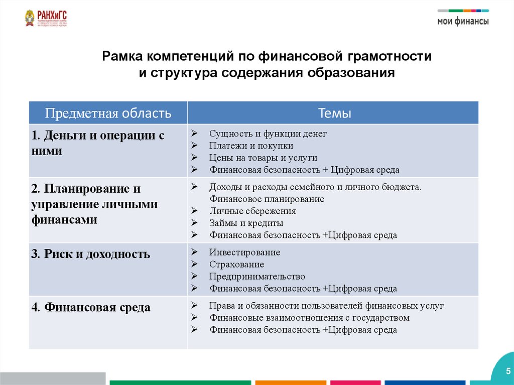 Рамка компетенций по финансовой грамотностии структура содержания образования