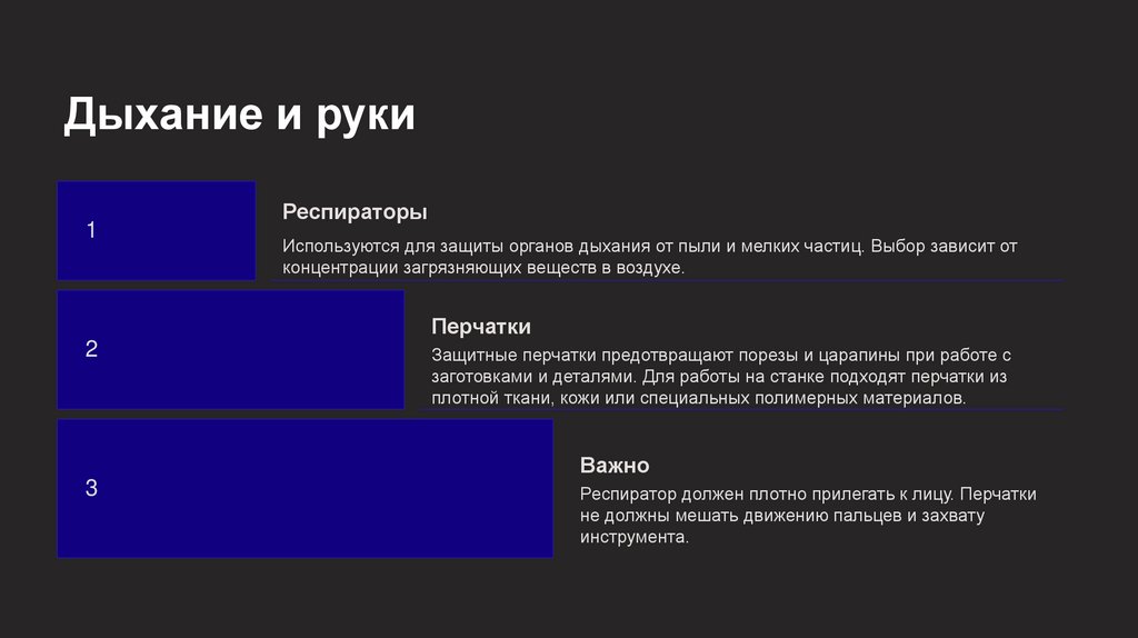 стружки, а также воздействия пыли и шума. Индивидуальные