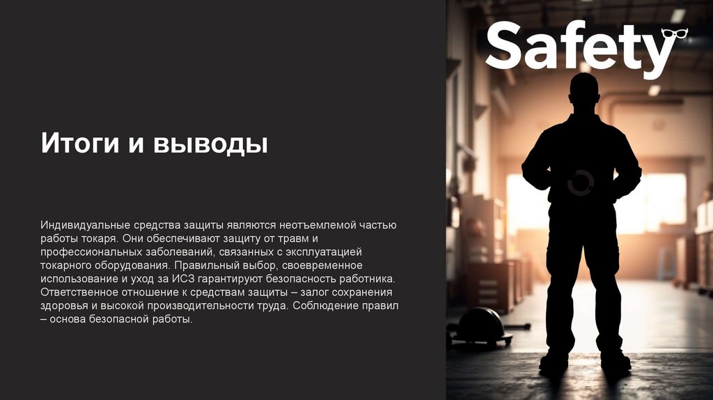 Итоги и выводыИндивидуальные средства защиты являются неотъемлемой частью