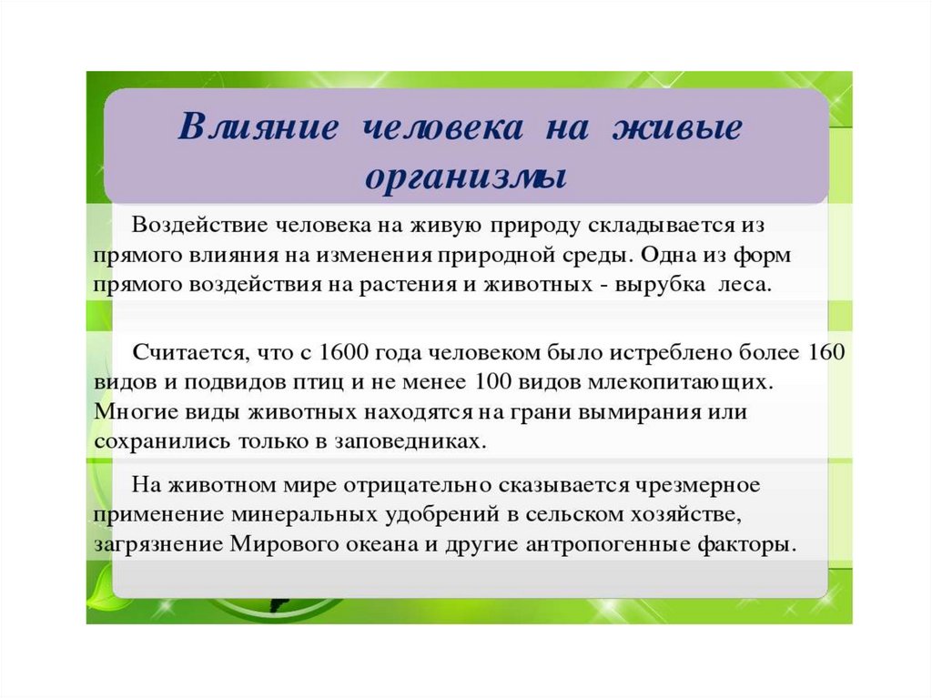 Антропогенный фактор - комплексное воздействие человека на окружающую среду