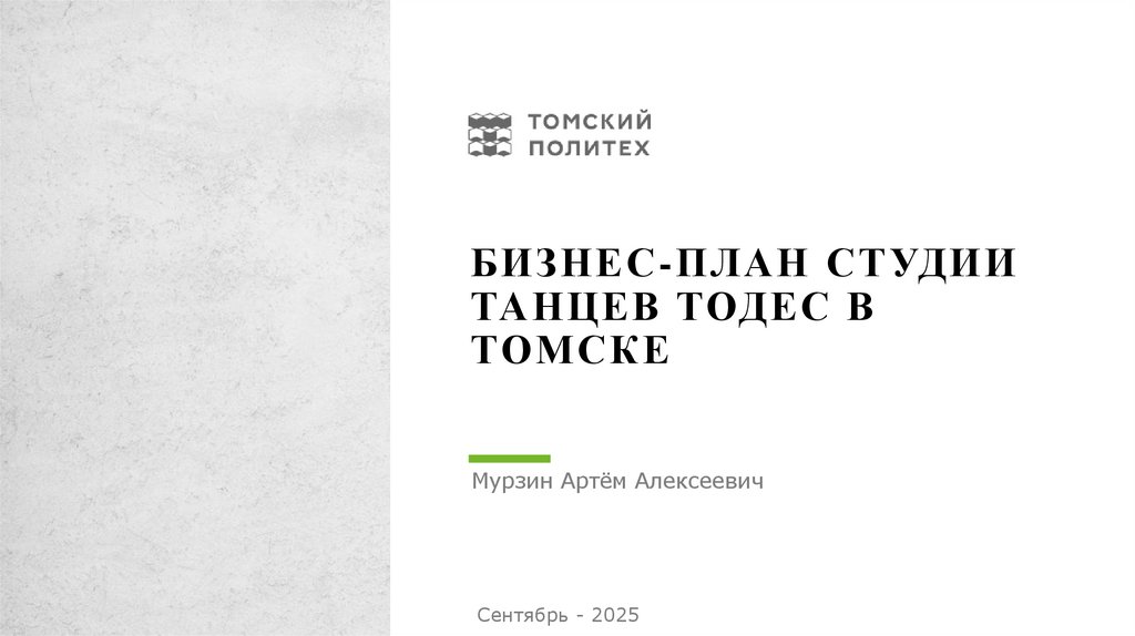 БИЗНЕС-ПЛАН СТУДИИТАНЦЕВ ТОДЕС В