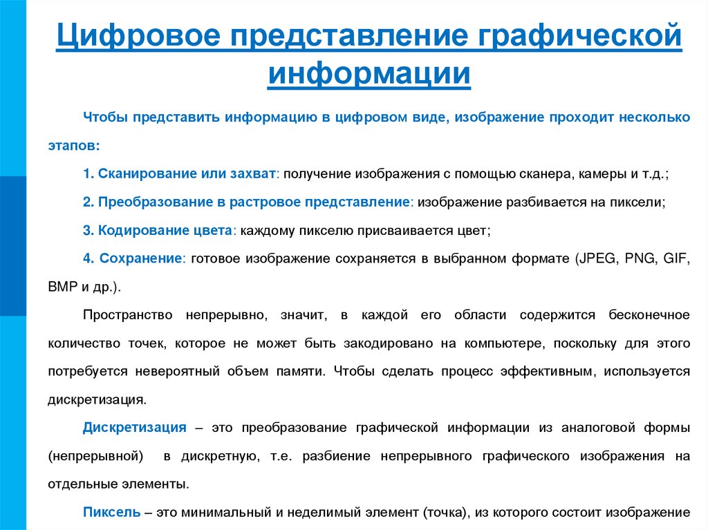 Чтобы представить информацию в цифровом виде, изображение проходит несколько