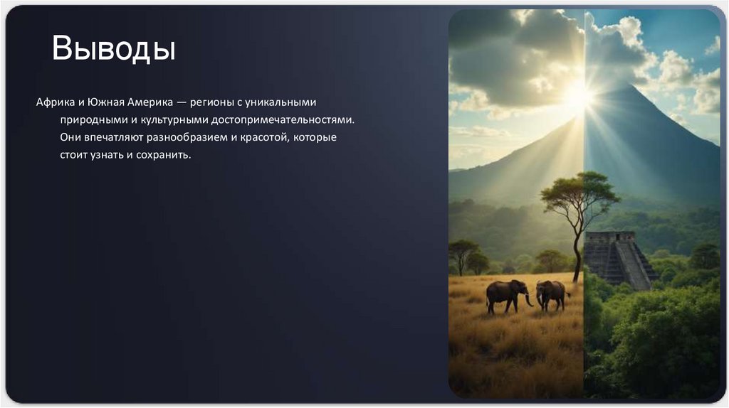 ВыводыАфрика и Южная Америка — регионы с уникальными