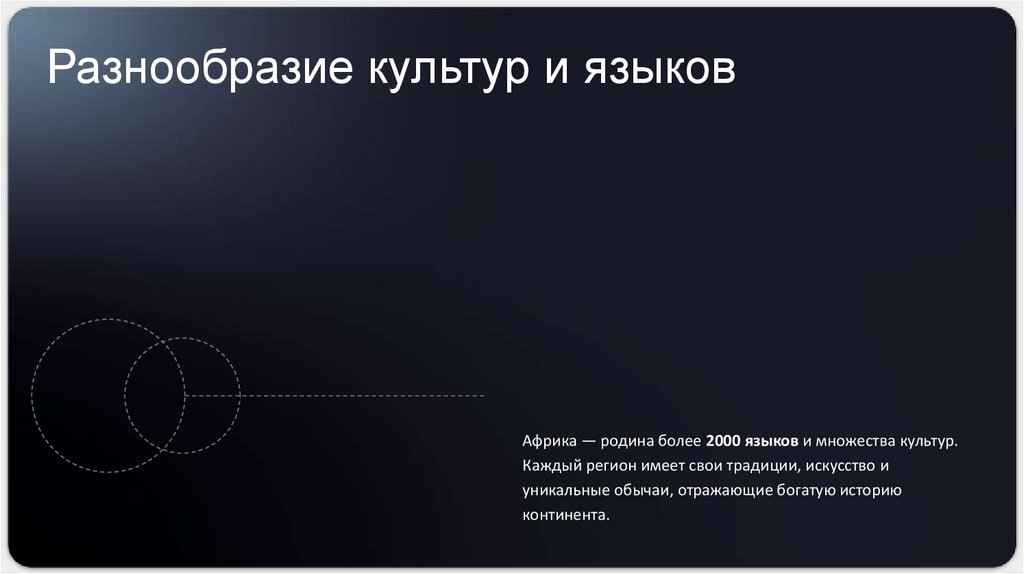 Разнообразие культур и языковАфрика — родина более 2000 языков и множества культур.