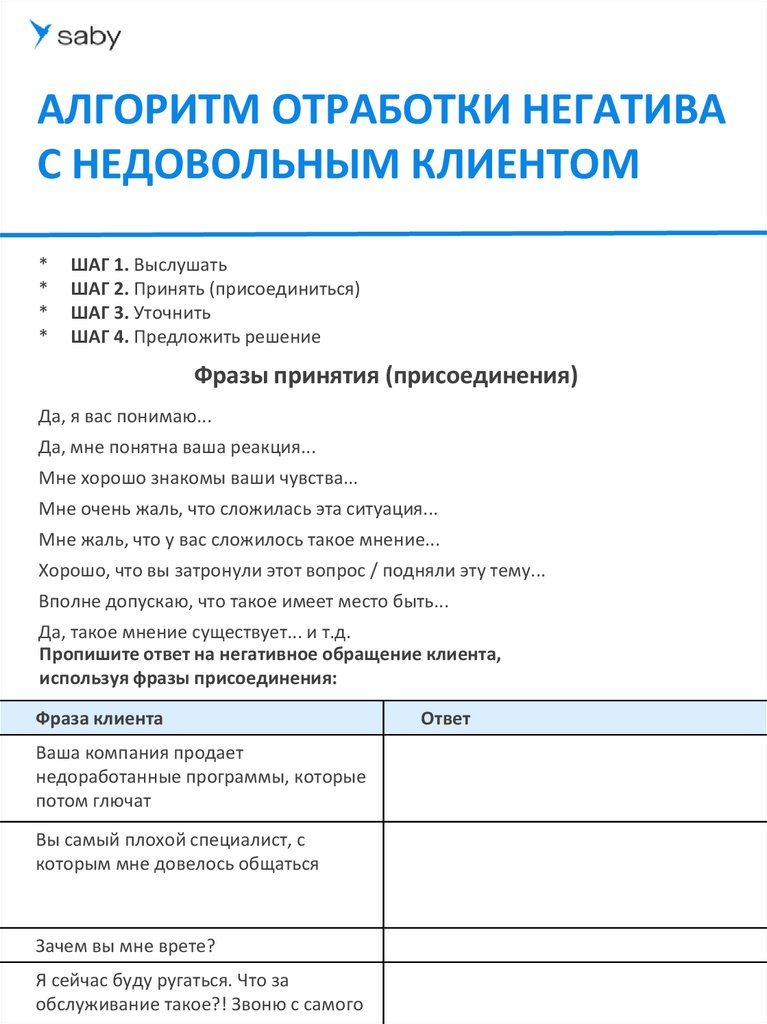 Работа с негативным клиентом. Рабочая тетрадь тренинга