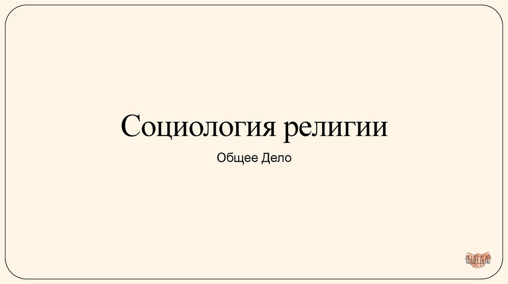 Общее Дело2. Социология религии – отрасль социологии, изучающая человеческое взаимодействие, организации и универсумы смыслов религиозных