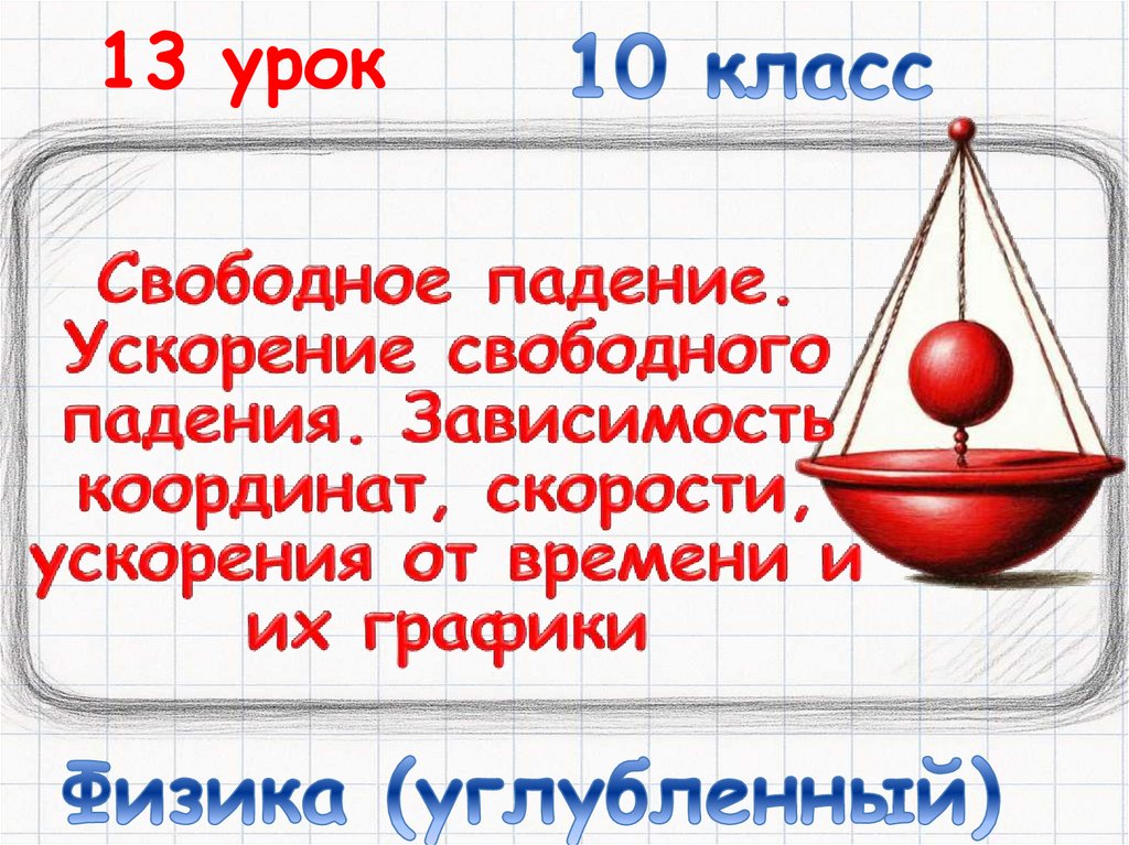 13 Свободное падение. Ускорение свободного падения. Зависимость координат, скорости, ускорения от времени и их графики