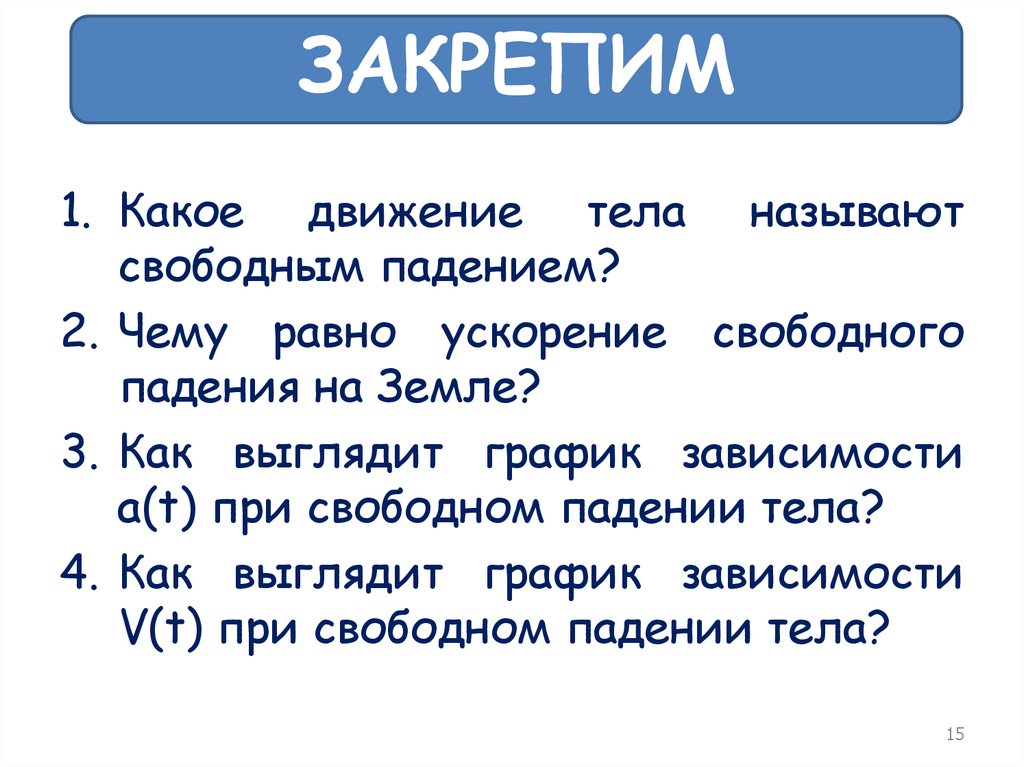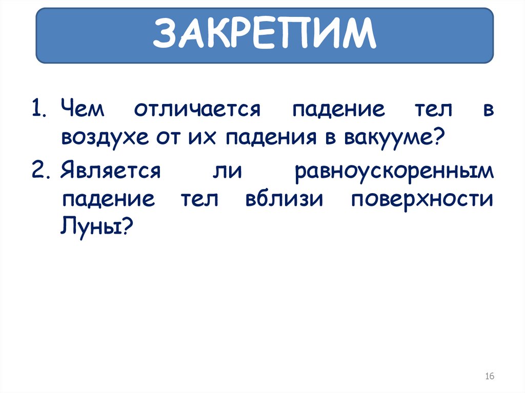 ЗАКРЕПИМ1. Чем отличается падение тел в