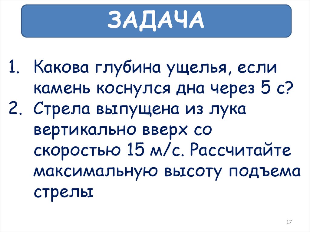 ЗАДАЧА1. Какова глубина ущелья, если