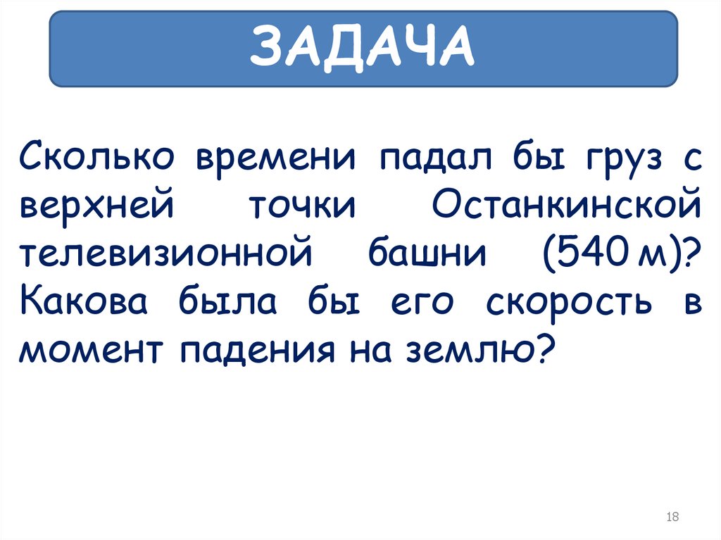 ЗАДАЧАСколько времени падал бы груз с