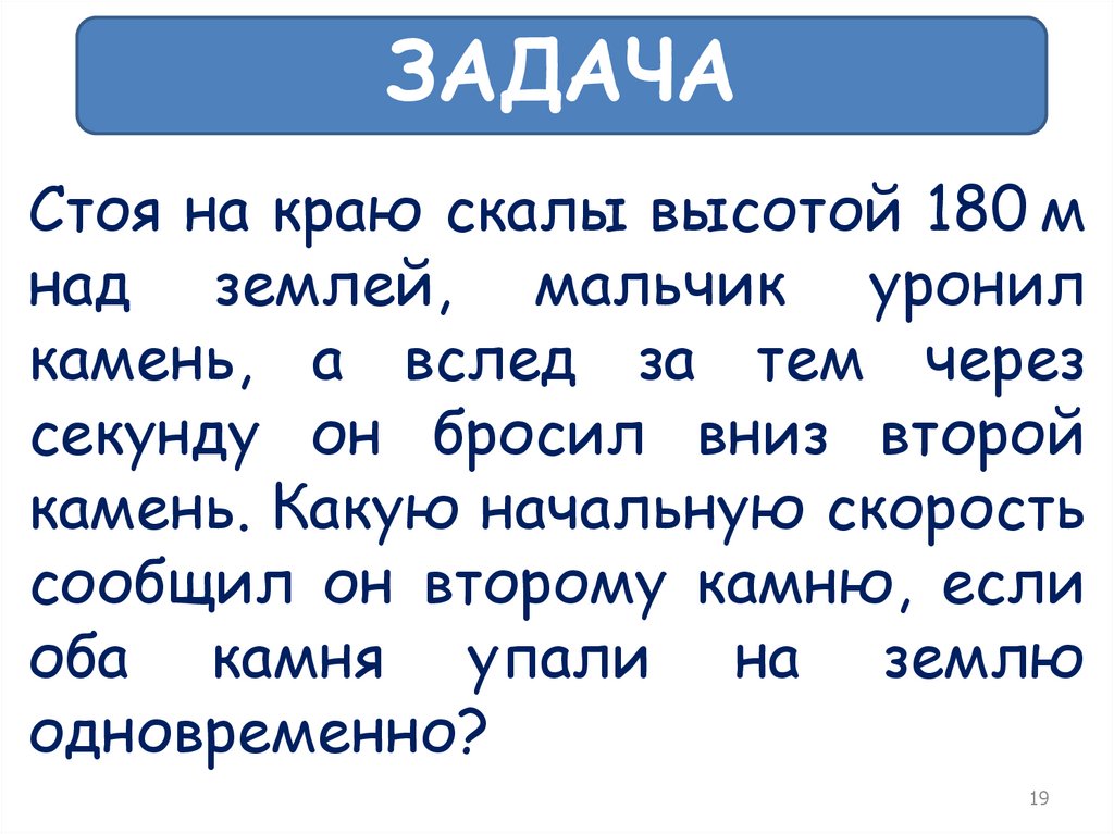 ЗАДАЧАСтоя на краю скалы высотой 180 м