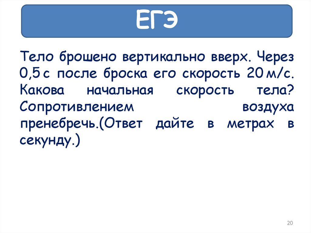 ЕГЭТело брошено вертикально вверх. Через
