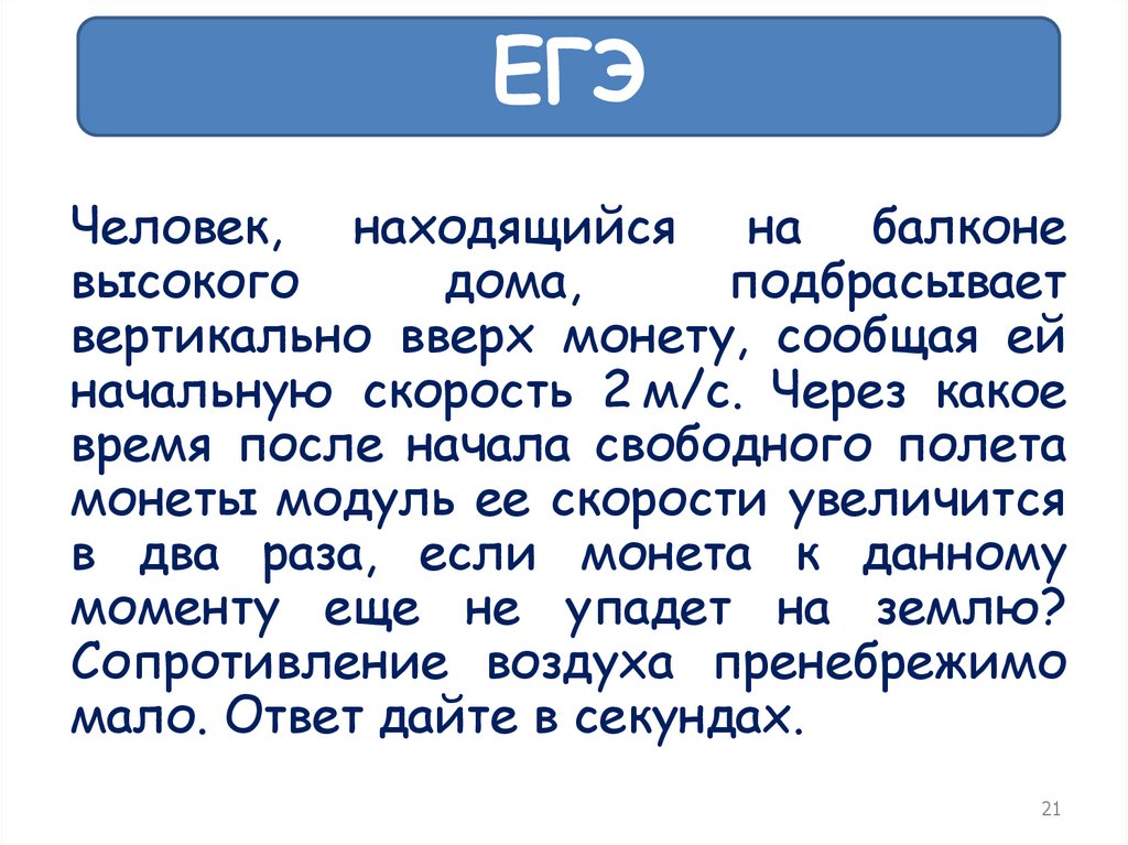 вертикально вверх монету, сообщая ей
