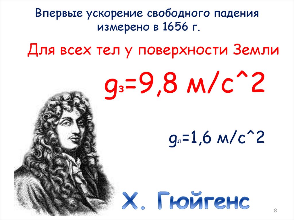 Впервые ускорение свободного паденияизмерено в 1656 г.